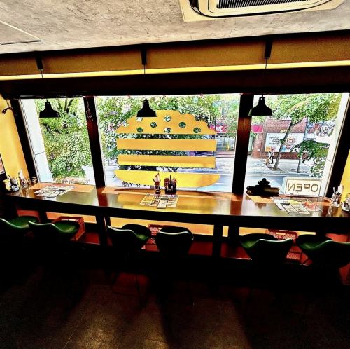 2階席の特権!街並みを一望できる、窓側カウンター席!